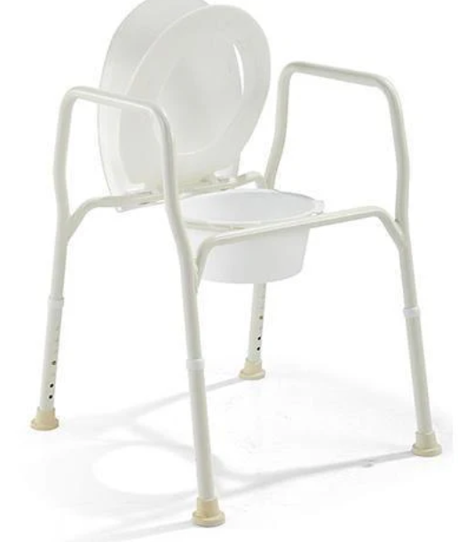 Designed to fit over most toilet suites, with height adjustable legs. integrated arms and is supplied with a splashguard.