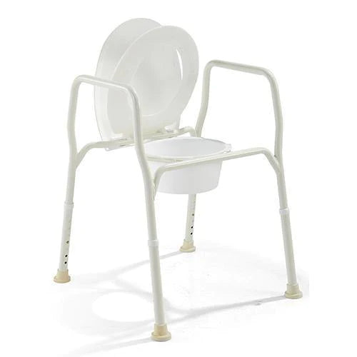 In most homes the toilet is too low for those who have difficulty bending or lowering themselves, particularly those who may be requiring or recovering from a hip replacement. Raising the height of the toilet seat makes toileting much safer & easier. Over Toilet Frames / Chairs with a seat & lid, have arms for added stability, support & grip, while the legs are height adjustable to raise the seat to the person's appropriate height. A splashguard is also included.