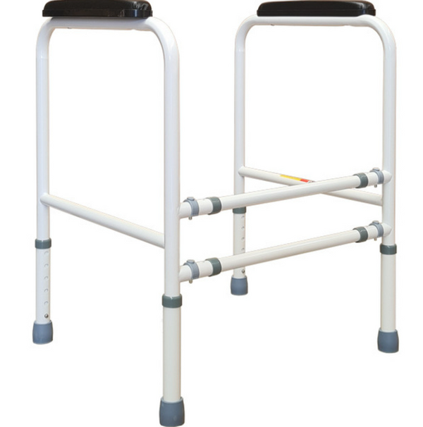 A Toilet Surround Frame provides support arms to assist the user with getting on / off the toilet. Used when the height of the toilet seat is satisfactory; if seat height adjustment is also required, an Over Toilet Frame is recommended