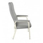 The High back orthopaedic chair offers maximum comfort and support with contoured backrest and padded armrests, perfect of post therapy recovery. Height adjustable along with seat depth adjustment has this chair suited to most users. Easy clean vinyl makes it ideal for both home or facility use. High back design provides increased postural support. Available in two seat widths and weight capacities.